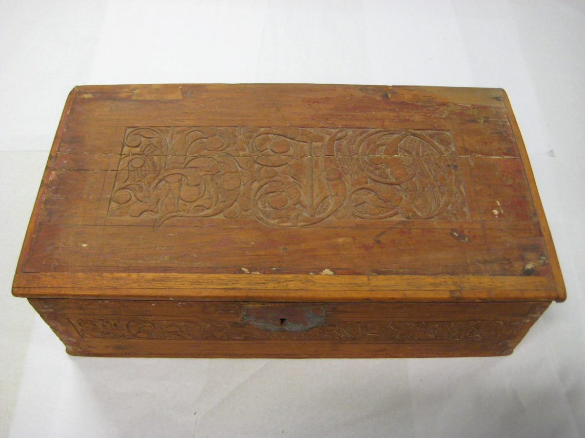Kistill með loki útskorinn. Á lokinu eru stafirnir Þ.J.d. það er Þórunn Jónsdóttir. Aftan á kassanum er með rómverskum tölum ártalið 1898, framan á hliðinni „Annó“, neðan á botninum eru stafirnir F.B. það er fangamark smiðsins Filippusar Bjarnasonar á Efri Hömrum í Holtum ættaður frá Sandhóla- ferju. Þórunn Jónsdóttir var fædd 1876 á Syðri Hömrum í Holtum, kom að Mjósundi átta ára gömul, fór þaðan 49 ára gömul til Reykjavíkur.