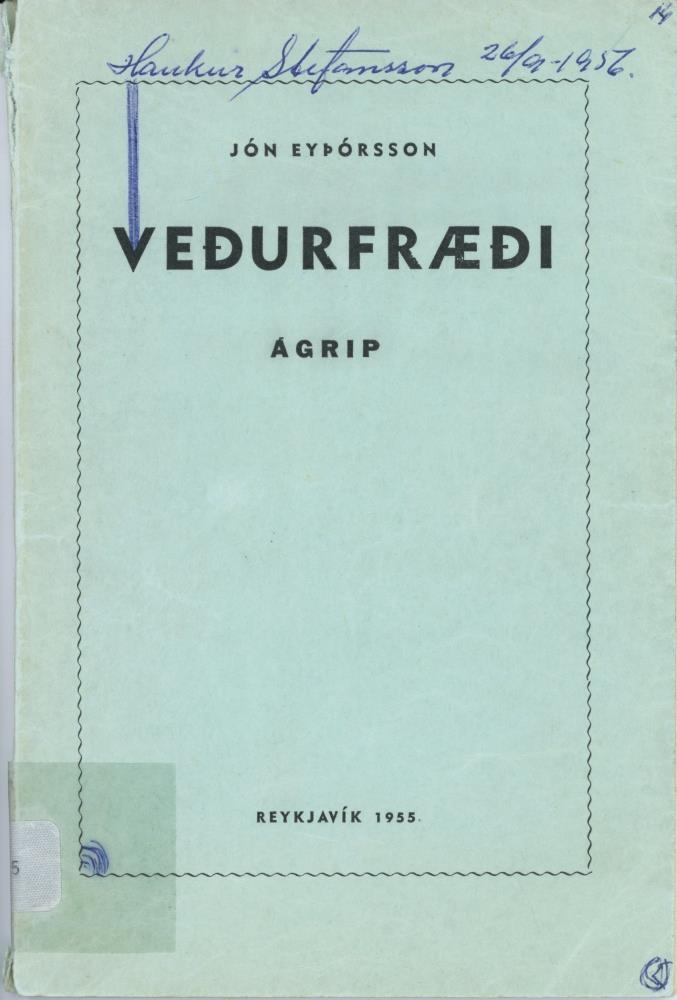 Þunn, mjúkspjalda bók um veðurfræði. Bókin er ljósblá að lit. Á bókarkápu er bókin merkt Hauki Stefánssyni - handskrifað - og dags. 26/9 - 1956. Á fyrstu opnu er bókin merkt Hauki, bæði handskrifað og með stimpli þar sem einnig kemur fram heimilisfang.