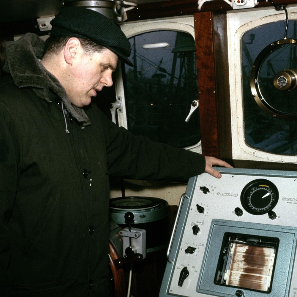 Eggert Gíslason skipstjóri frá Krókvelli í Garði við störf sín um borð.