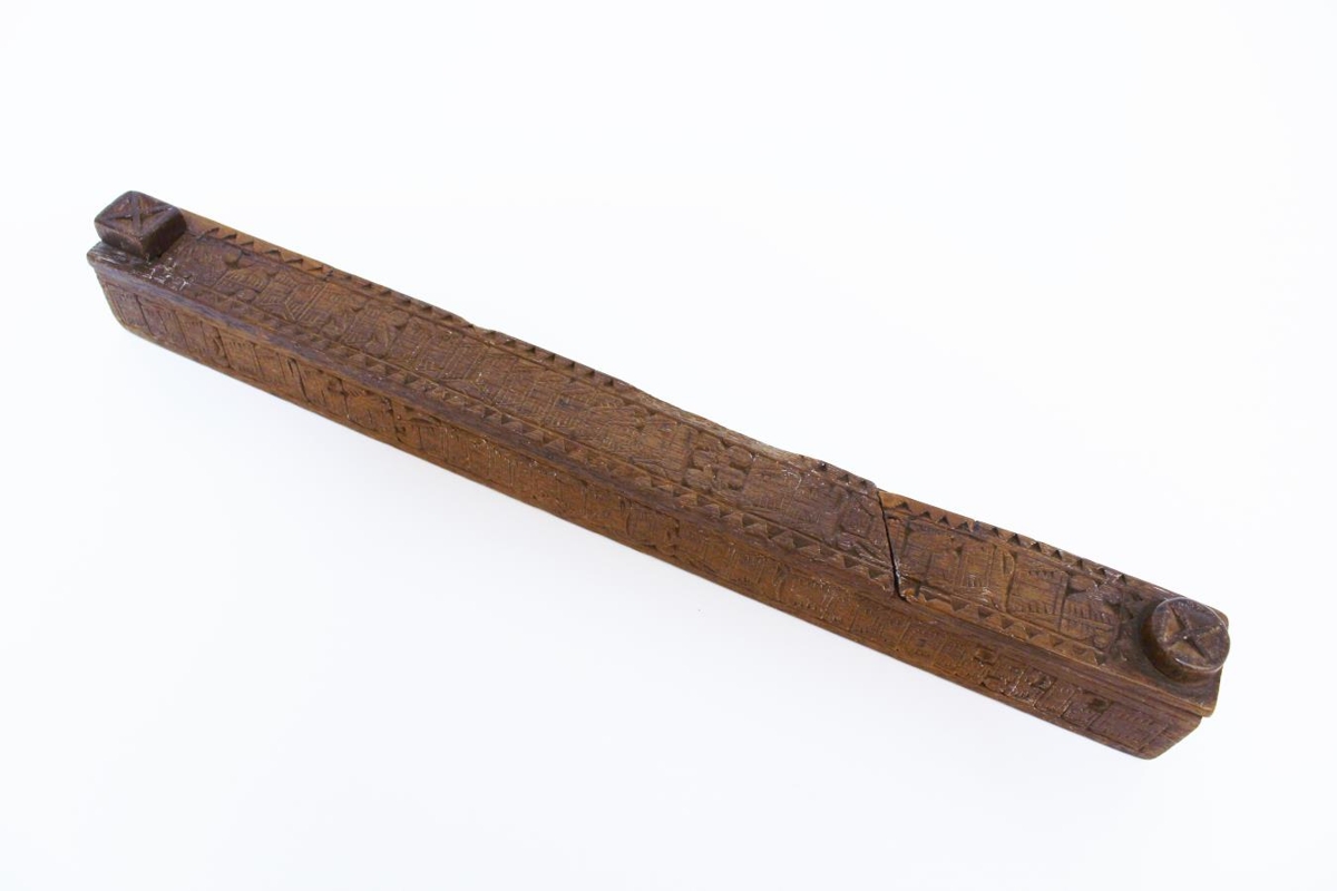 Prjónastokkur, lengd 34,6 sm skorinn höfðaletri þessi vísa: „Stokkinn hef ég heitið þér, hann vel geymir prjóna. Þú átt skilið það af mér, þöllin eisu lóna.“ Prjónastokkinn átti lengi Hólmfríður Sigurðardóttir frá Fagurhólsmýri í Öræfum, ógift kona og barnlaus. Var um 30 ár hjá Árna sýslumanni Gíslasyni og fluttist með honum út í Krísuvík. Þaðan fór hún að Herdísarvík til Þórarins sonar Árna, og hjá honum var Hólmfríður um 32 ár. Dó hjá honum í Reykjavík árið 1931 rúmlega 92 ára gömul. Úr lokinu á stokknum var brotið á þremur stöðum, lét Skúli útskurðarmann gera við stokkinn og kostaði það 350 kr.
