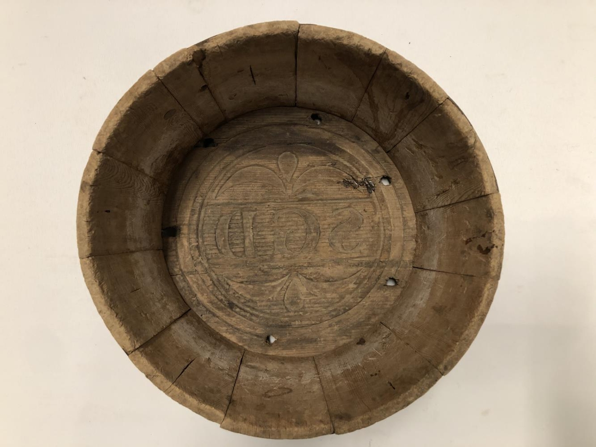 Ostabytta gömul, botninn að innan skorinn rósum og innan í þeim eru stafirnir S.G.d.fangamark Sigríðar Gísladóttur prestkonu síðast að Mosfelli, konu séra Stefáns. Þau voru móðurforeldrar Stefáns í Laugardalshólum.