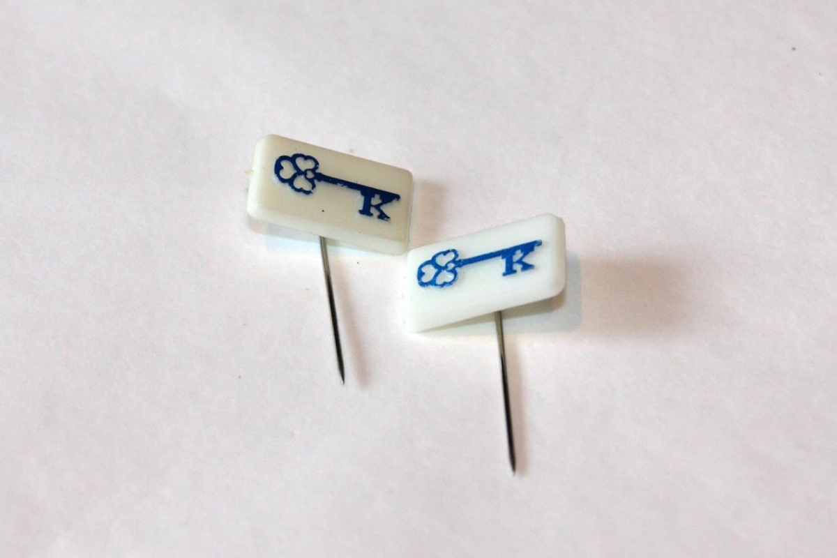 K lykill Kiwanishreyfingarinnar, hvítur í grunninn með bláu merki.