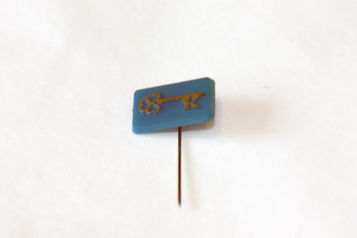 K lykill Kiwanishreyfingarinnar, blár í grunninn með gylltu merki.