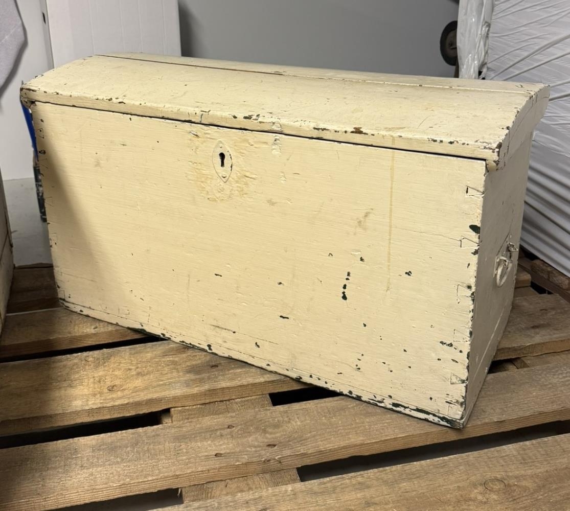 Hálfkista hvítmáluð. Úr eigu Guðmundar