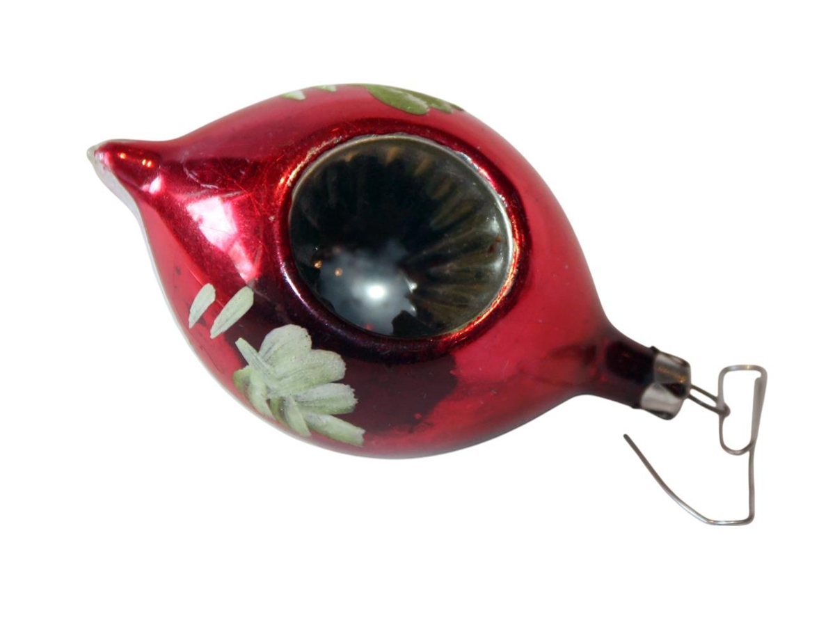 Rauð jólakúla skreytt með hvítum og silfriðum skreytingum