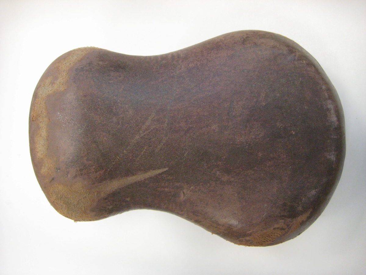 Var á verkstæði Guðmundar. Kringlulaga sæti leðurklætt.