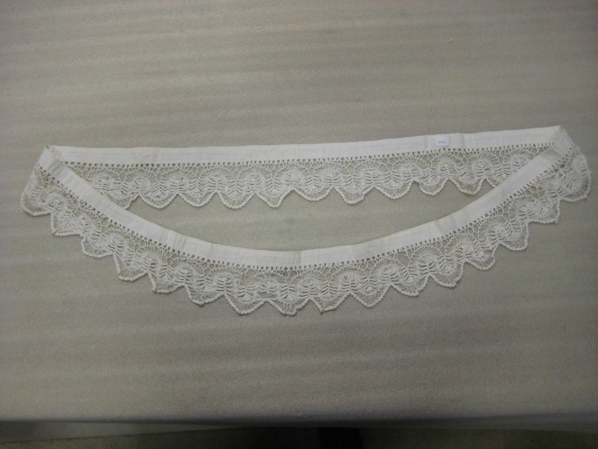 Hekluð og gimbuð blúnda. Guðný Friðbjarnardóttir var alin upp í Hrísey en fædd að Kaðalstöðum í Fjörðum. Hún fór snemma að vinna fyrir sér m.a. á Hjalteyri og eignaðist snemma saumavél. Giftist að Klausturhólum í Grímsnesi, móðir gefanda.
