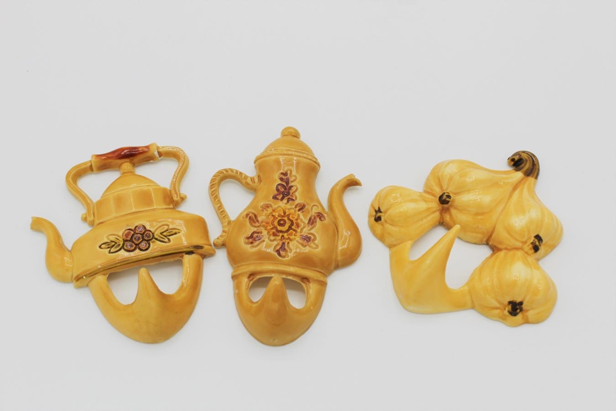 Þrír úr gifsi en hinir úr plasti 3864. Gifshanki, paprikulaga. Límmiði