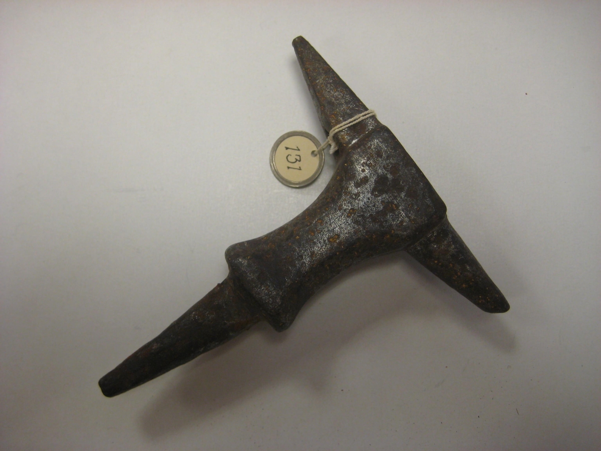 Steðji lítill, tvínefjungur. Talinn vera frá Ólafi smið Þormóðssyni í Hjálmholti í Hraungerðishreppi. Síðar átti steðjann Tómas Sigurðsson á Stærribæ í Grímsnesi dáinn 1922. Var steðjinn svo á þeim bæ til ársins 1935 er Skúli Helgason fékk hann.