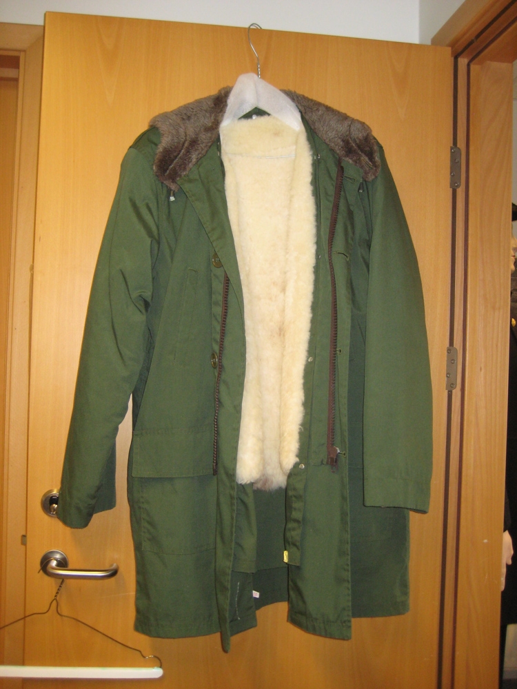 Úlpa. Vír-úlpa/Íslandsúlpa.Græn úlpa, bómull, fóðruð að innan með hvítri gæru. VÍR-framleiðsla. Úlpan var í fórum Ella Runólfs Guðmundssonar, en var áður notuð af Sigurgeiri Runólfssyni föðurbróður hans.