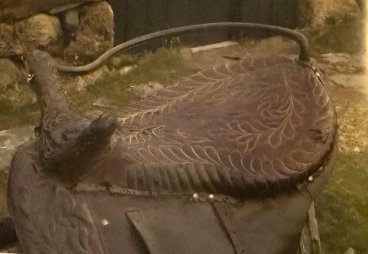 Kvensöðull með ensku lagi, klakksöðull, alklæddur upphleyptu leðri á setu. Hefur verið mjög vandaður gripur. Fyrsti eigandi frú Anna Briem kona Ólafs ? Briem í Reykjavík, síðar átti hann Guðbjörg kona Siggeirs í Teigi og eftir hana Vilborg kona Sveins á Grjótá, sem gefur safninu hann.