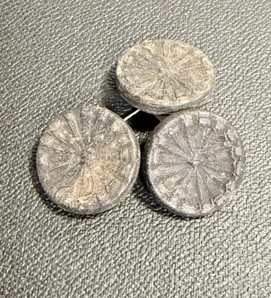 Þrír beinhnappar, svartir, þverm. 2,1 cm. Auga fyrir festingu er á hnappfæti, yfirborð nokkuð skreytt, rós með 16 blöðum. Þessir hnappar eru úr eigu Vilborgar Tómasdóttur á Hrútafelli.