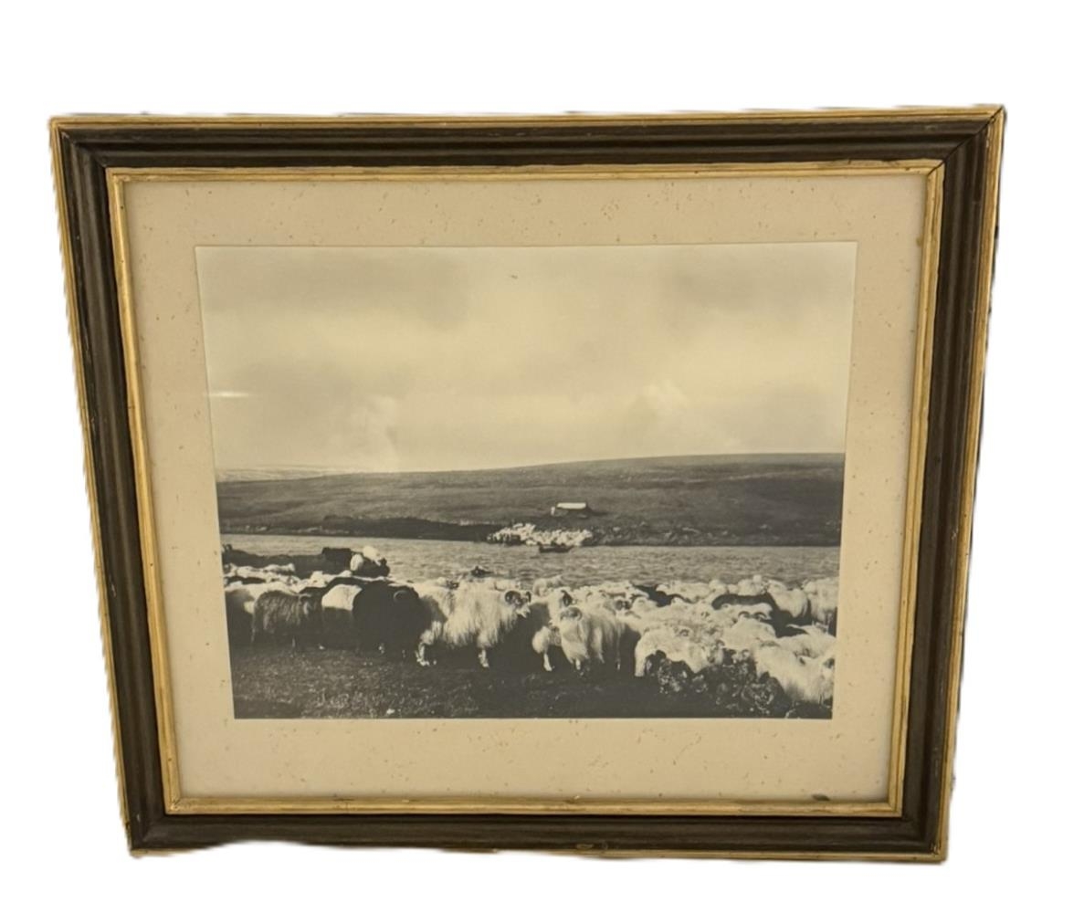 Stækkuð innrömmuð ljósmynd, 40 x 35 cm. Fjallsafnið við haldið í Tungnaá. Ljósm. Dr. Hans Kuhn. Gefandi Aðalsteinn Jónsson frá Sumarliðabæ: ( Kom 2/5 1998).