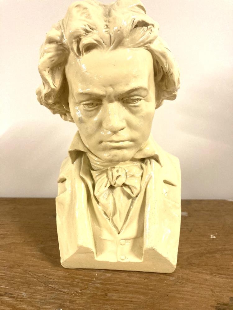Beethoven, brjóstlíkan úr keramiki. Rjómagult að lit. Sjá einnig grip R-3587