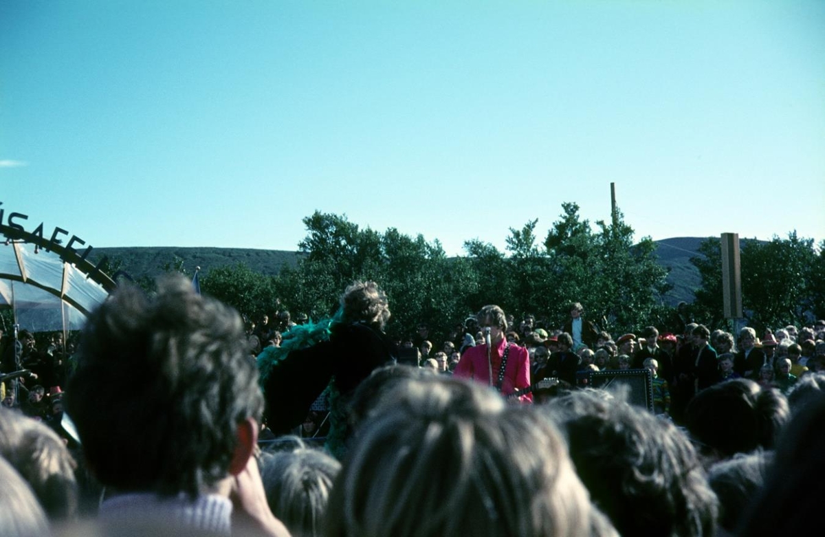 Húsafell. Hljómar spila á útihátíð og mannfjöldi að fylgjast með. 1968