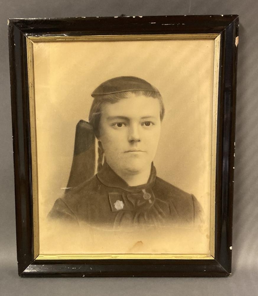 Innrömmuð, teiknuð mynd, Margrét Árnadóttir frá Reynifelli, f. 05.12.1873, seinni kona Tómasar Sigurðssonar, sjá mun R-6916. Gefendur: Daði, Tómas, Helga, Ingibjörg og Margrét, börn Sigurðar Tómassonar og Maríu Sigurðardóttur á Barkarstöðum í Fljótshlíð.