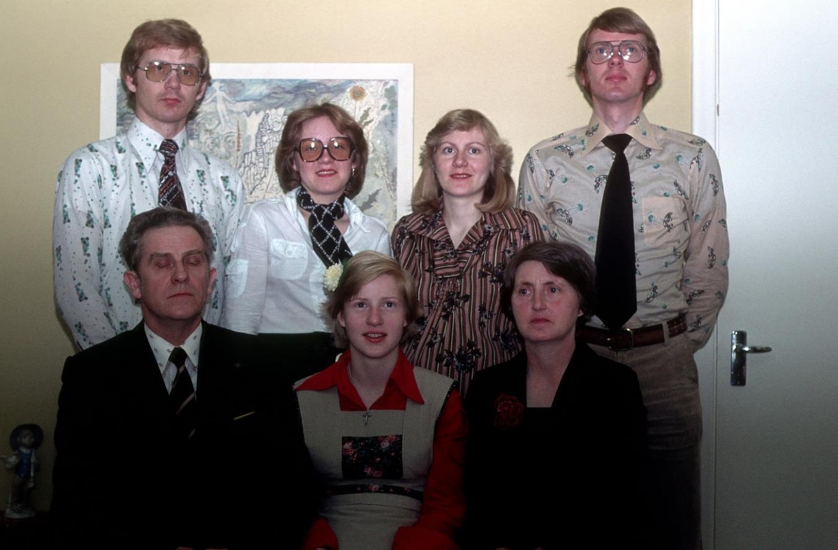 Skálholt 17. Ólafsvík. Fjölskyldumynd. Egill, Svanfríður, Karitas Anna, Þórður yngri. Þórður eldri, Guðríður og Aðalsteina. 1977