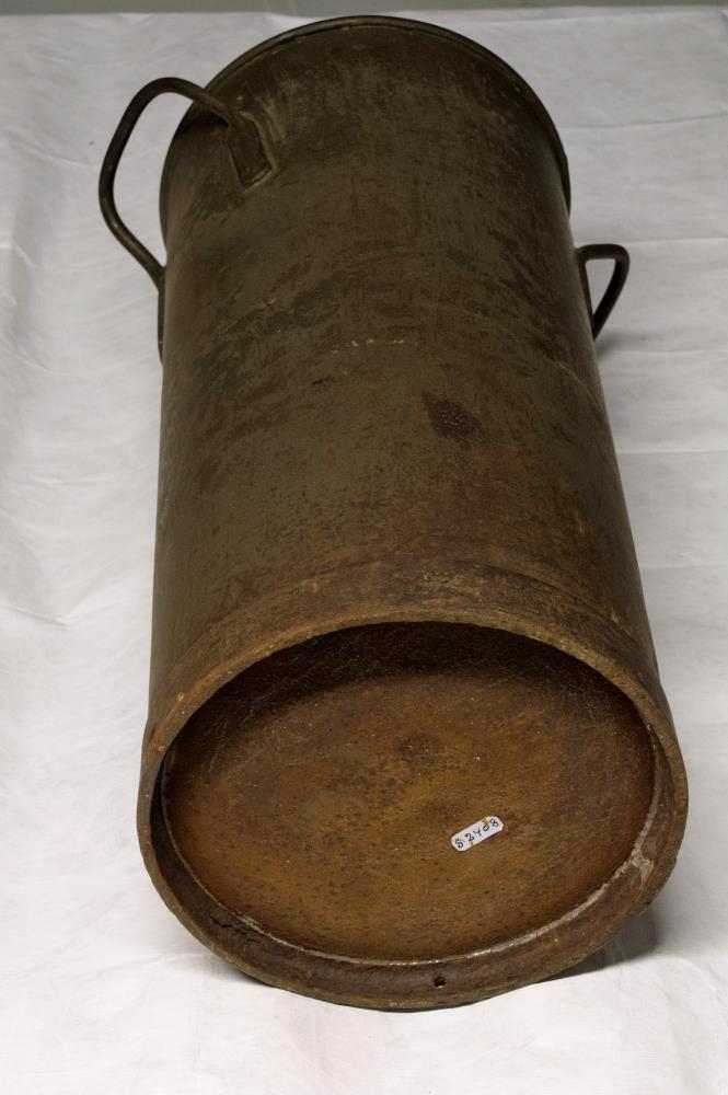 Rjómabrúsi úr búi foreldra gefanda, Elínar Guðjónsdóttur frá Efri Presthúsum, Guðjóns Guðmundssonar og Ingveldar Tómasdóttur og áður Brands Einarssonar og Jóhönnu Árnadóttur. Er frá rjómabúinu við Deildará frá um 1910. Hæð 55,5 cm, þvermál 26,5 cm. jafnvíður upp. Með tveimur eyrum. Framleiðslumerki: Sporöskjulaga eirskjöldur (kopar), öldur, sól úr hafi og FM. Efni járn, tinhúðað. Ekkert lok. Að líkum danskur.