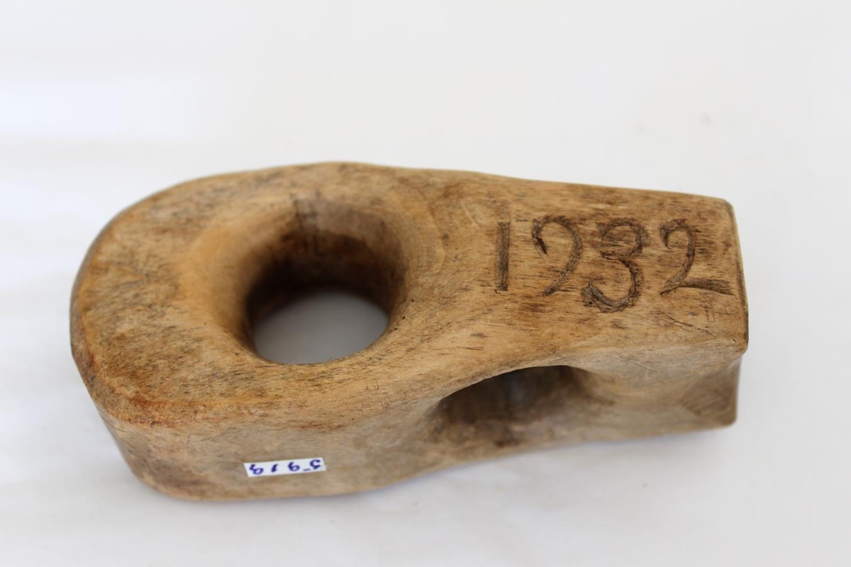 Reipahögld úr íslensku birki, jómfrúhögld með tveimur misvísandi götum, 11,5 cm á lengd. Merkt: GJS og 1932. Kristín Skúladóttir frá Keldum fékk högldina í Króktúnu í Landsveit. Gefandi Skúli Jón Sigurðarson framkvæmdastjóri, Sóltúni 9, Reykjavík.