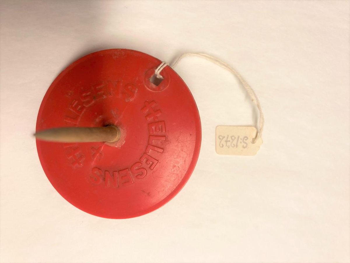 Topra, nýleg. Skjöldurinn úr Hellesens rafhlöðu. Frá fyrstu árum Hellesens rafhlöðu á Íslandi. Guðjón Ólafsson á Blómsturvöllum gerði topruna og gaf.