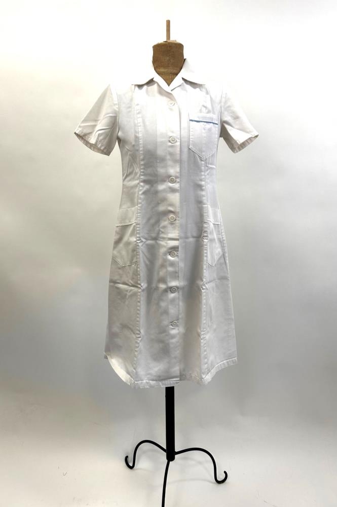 Sjúkraliðasloppur. Sloppar sem þessir voru notaðir af sjúkraliðum á heilbrigðisstofnunum áratugum saman.