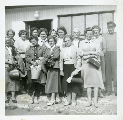 Félagskonur í kvenfélaginu Gefn í Garði á ferðalagi, líklega á kvenréttindadaginn 19. júní. Hér má þekkja margar merkar og góðar konur úr Garðinum, Auður Tryggvadóttir önnur frá hægri var formaður kvenfélagsins Gefnar í áratugi.