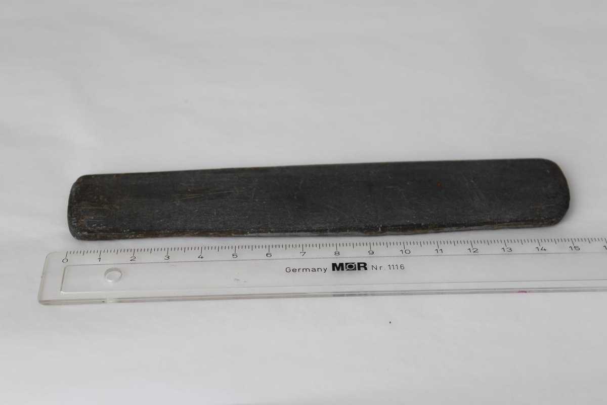 Hein (heiðnabrýni). Mýksta gerð af brýnum. 15,3 x 2,6 cm, þykkt um 3 cm.