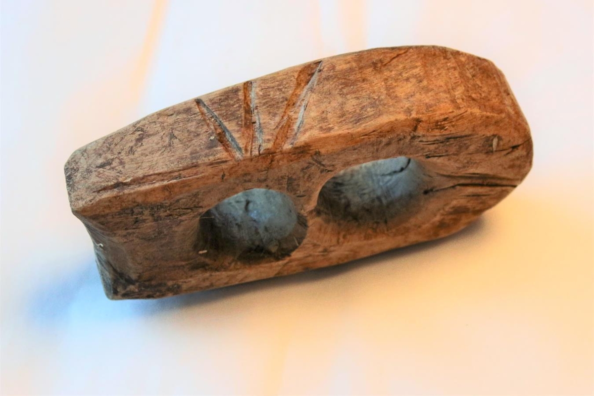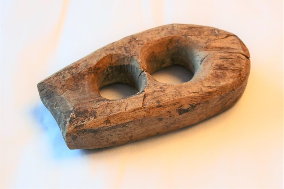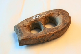 Reipahögld, tvígata, smíðuð úr birki. Mörkuð búmarki, kló.