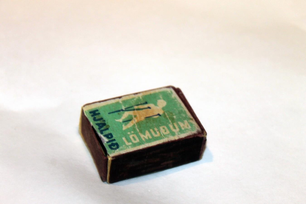 DREKA eldspýtur og á bakhið stendur HJÁLPIÐ LÖMUÐUM