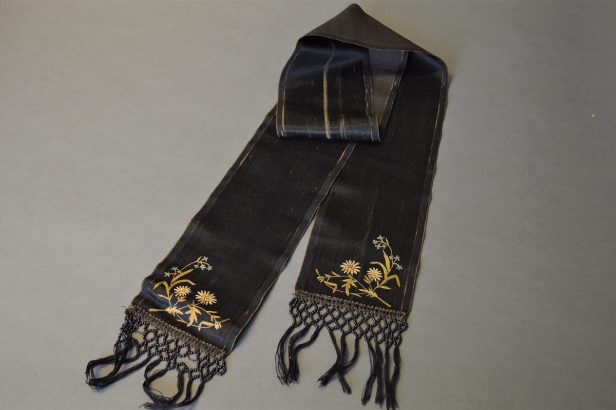 Peysufataslifsi úr silki (?), svart, lengd um 133 cm, breidd 11 cm. Kögrað til enda. Jóhanna Jóhannsdóttir á Torfastöðum teiknaði blómamystur í sjalið og saumaði. Kögrið með áþræddum perlum einnig verk hennar. Var síðar í eigu Guðnýjar Guðnadóttur á Torfastöðum, dóttur Jóhönnu. Afhent af Hönnu Helgadóttur frá Torfastöðum í Fljótshlíð: