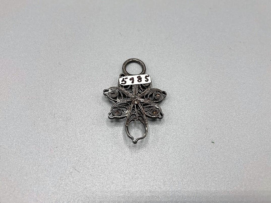 Silfurmilla frá upphlut, kornsett víravirki. Lengd 3,5 cm. Þetta er sjöhyrnd stjarna. Skreyting í neðsta reit er brottu.