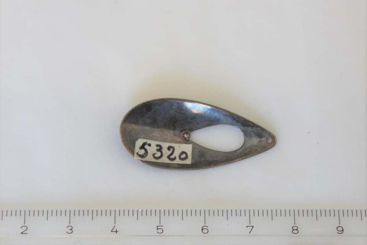 Eyrnalokkur úr silfri. Gefið af Guðnýju og Hönnu Helgadætrum, Byggðarenda 15, Reykjavík.