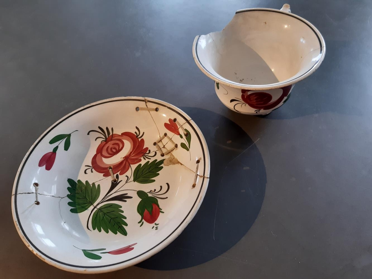 Kaffibolli ásamt undirskál (bollapar), úr eigu Runólfs Guðmundssonar bónda á Svartanúpi. Hvorttveggja skreytt með rósum og laufum. Brotið úr bollabrúninni, skálin margboruð og saumuð. Bollinn er fornlegur og óvenjustór.