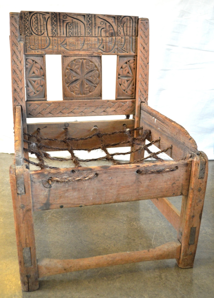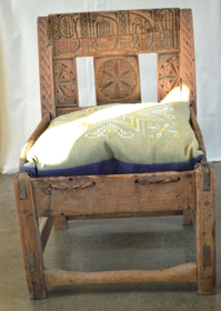 Stóll, smíðaður úr furu, útskorinn, vafalaust verk Runólfs Sveinssonar í Klauf í Meðallandi. Sambærilegur við stól frá Sámsstöðum í Fljótshlíð. Brotið ofan af efri þverfjöl í baki og miðspjald í baki glatað. Endurbætt af safnverði, þverfjöl þó nokkuð út í bláinn, hvað fangamark áhrærir. Stóllinn var í eigu Signýjar Þorkelsdóttur frá Skálmabæjarhraunum. Gefinn af Sigurði Gestssyni í Hvammi í Skaftártungu.