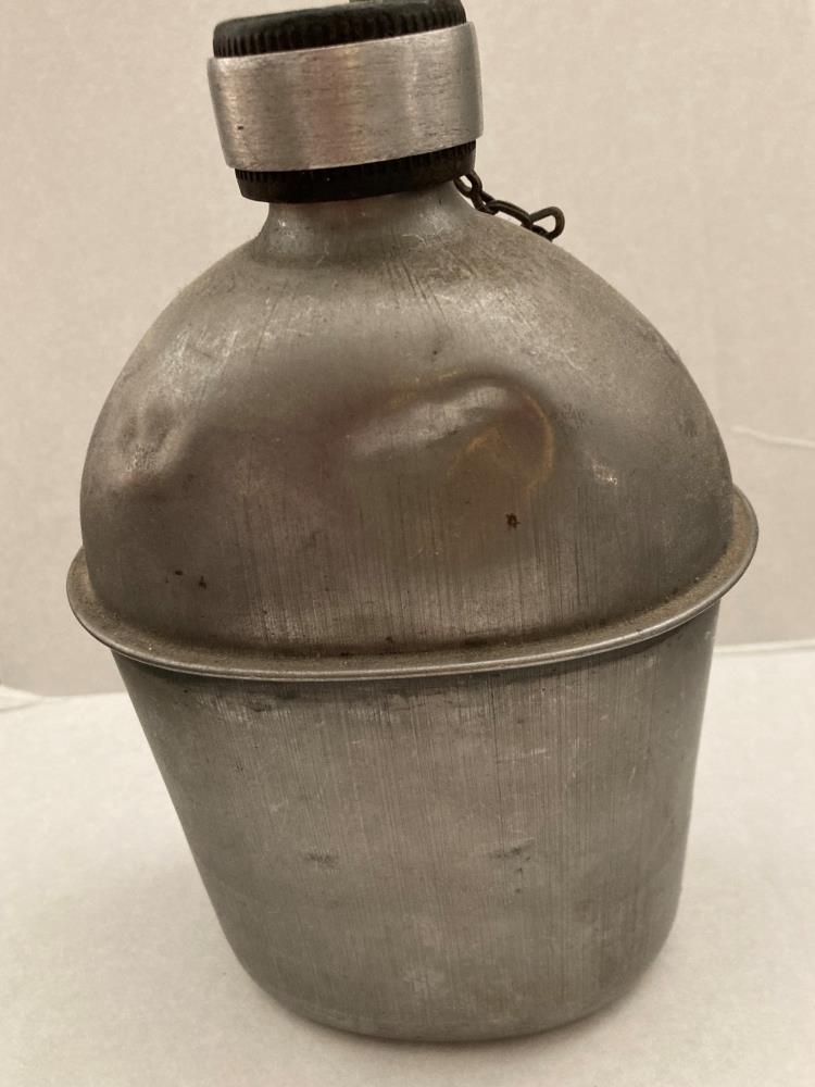 1 l vatnsbrúsi úr áli. Áskrúfaður tappi sem festur er við brúsann með keðju úr járni.Hæð 18,5 sm, breidd 7,5 sm, lengd 11 sm. Undir botni er letrað: U.S. SMCO 1944.