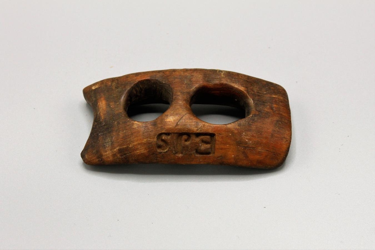 Beislishögld úr horni, merkt EJS (sbr. nr. S-1331). Gefið af Guðjóni Sæmundssyni í Stóra-Dal í Mýrdal.