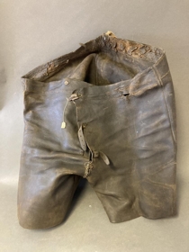 Ferðabúningur sr. Magnúsar Bjarnarsonar prófasts á Prestsbakka, leðurjakki og leðurbuxur (stuttbuxur). Mun saumaður af Lárusi Lúðvíkssyni í Reykjavík um 1903. Sr. Magnús notaði þennan fatnað í ferðum til loka prestsskapar, er farið var á hestum. Er hann klæddur honum á þekktu málverki Jóns Stefánssonar af sr. Magnúsi. Leðurstígvél, klofhá eru glötuð. Gefið af Birni Magnússyni prófessor í Reykjavík. Stærð: Jakki, 770 x 500 mm (sídd x axlir), buxur 440 x 120 mm (sídd x mitti ummál).