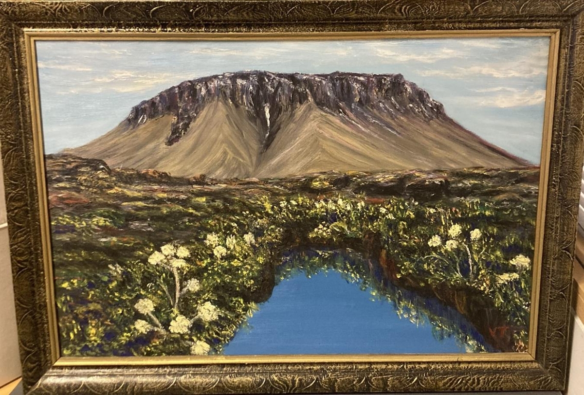 Málverk Vilborgar Tómasdóttur frá Hrútafellskoti af Herðubreið frá Hvannalindum.