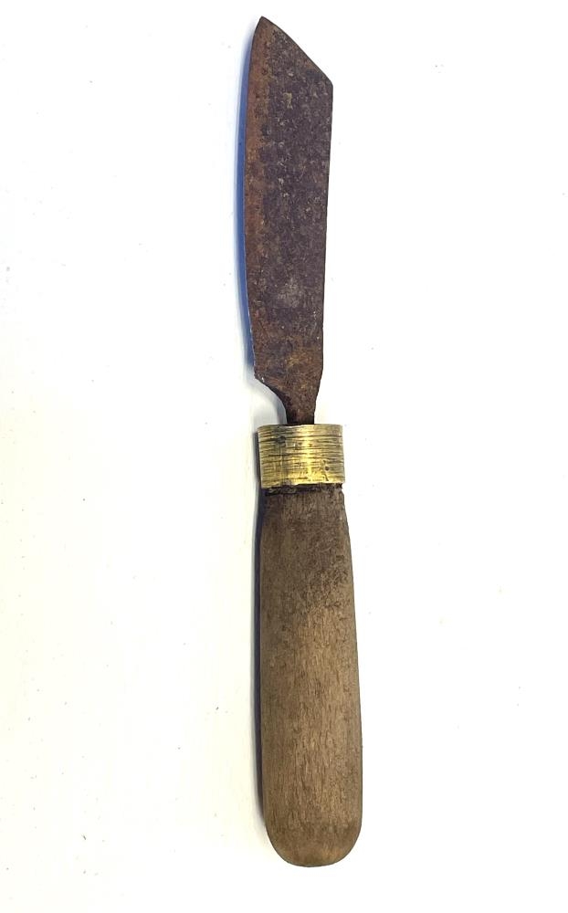 Hnífsblað, íslensk smíði, blað um 9,5 x 2,6 cm, tangi 4,5 cm á lengd. Óslitið.
