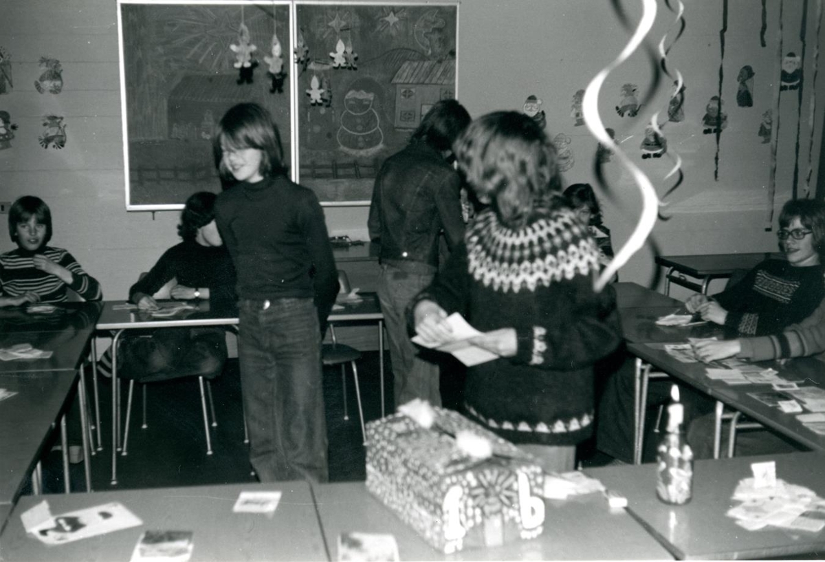 Laugaskóli í Sælingsdal. Litlu jólin 1975. "Í stofu 7. bekkjar að morgni síðasta dags fyrir jól."