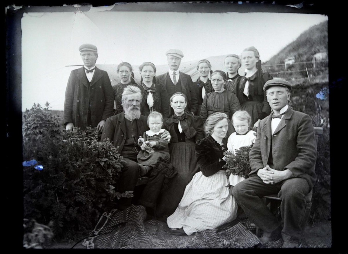 Aftari röð f.v.: Sigurður Finnsson, Þórunn Finnsdóttir, Matthildur Finnsdóttir, Einar Magnússon (maður Matthildar), Oddný Finnsdóttir, Guðrún Jónsdóttir, Ragnhildur Finnsdóttir, Ingibjörg Finnsdóttir.