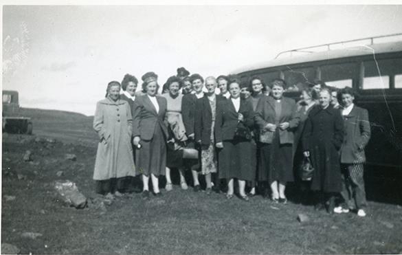 Félagskonur í kvenfélaginu Gefn í Garði á ferðalagi um sveitir landsins á árunum 1960 – 1963. Ábendingar um nöfn kvennanna á myndinni eru vel þegnar.
