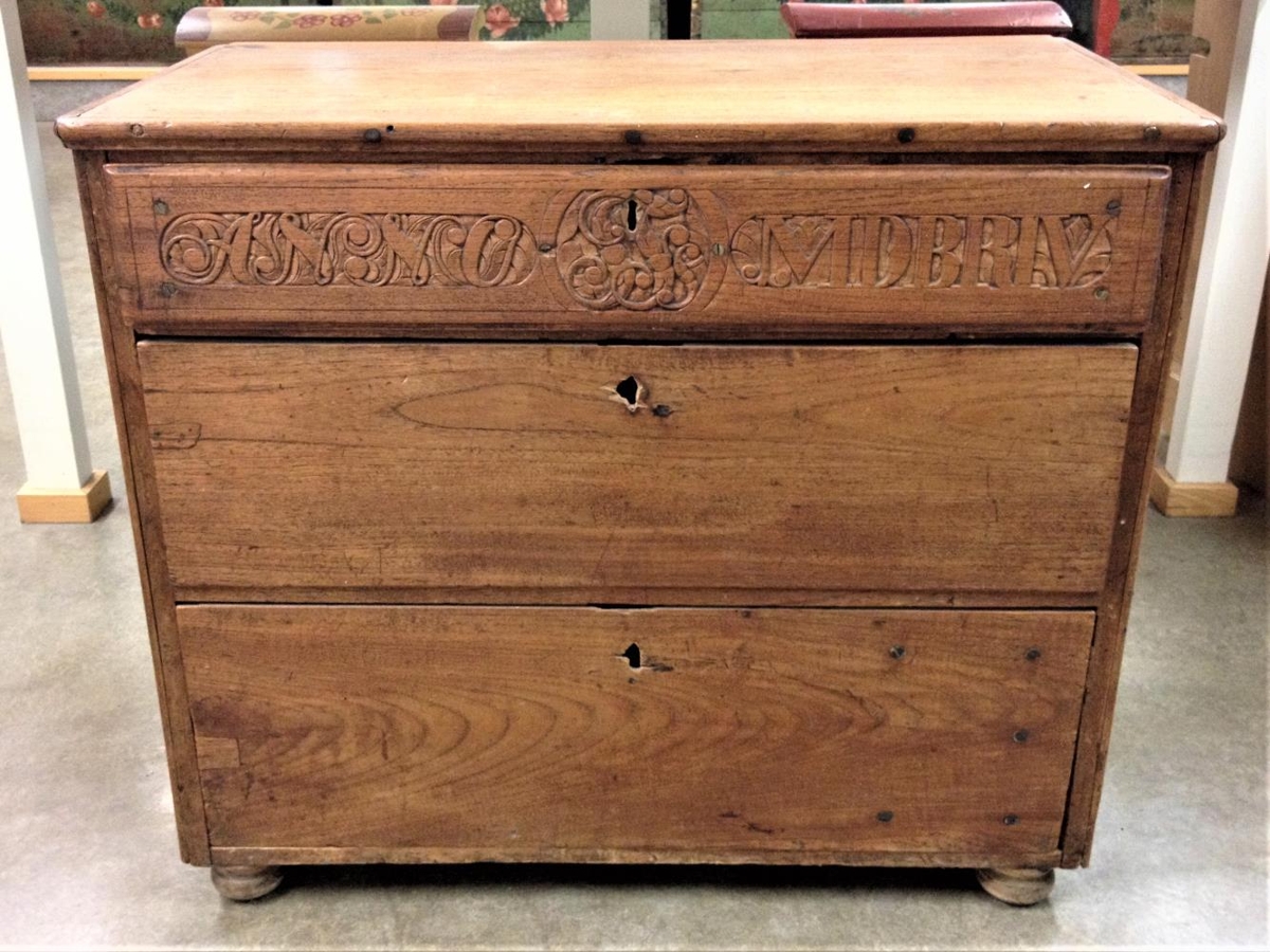 Kommóða, smíðuð af Filippusi Bjarnasyni á Efri-Hömrum. Smíðaefni mun að mestu vera það, sem nefnt var amerísk eik. Renndir fætur að framan. Skúffur eru þrjár. Framhlið hinnar efstu er útskorin. Þar er letrað: ANNO ( SFs ) M D B R I V = árið 1884, Sigurður Filippusson. Læsingar og lauf brottu. Lyklahringur úr kopar með þremur járnlyklum, útlendum. Á hringinn er letrað: Sigurður. Árni Filippusson stakk letrið.