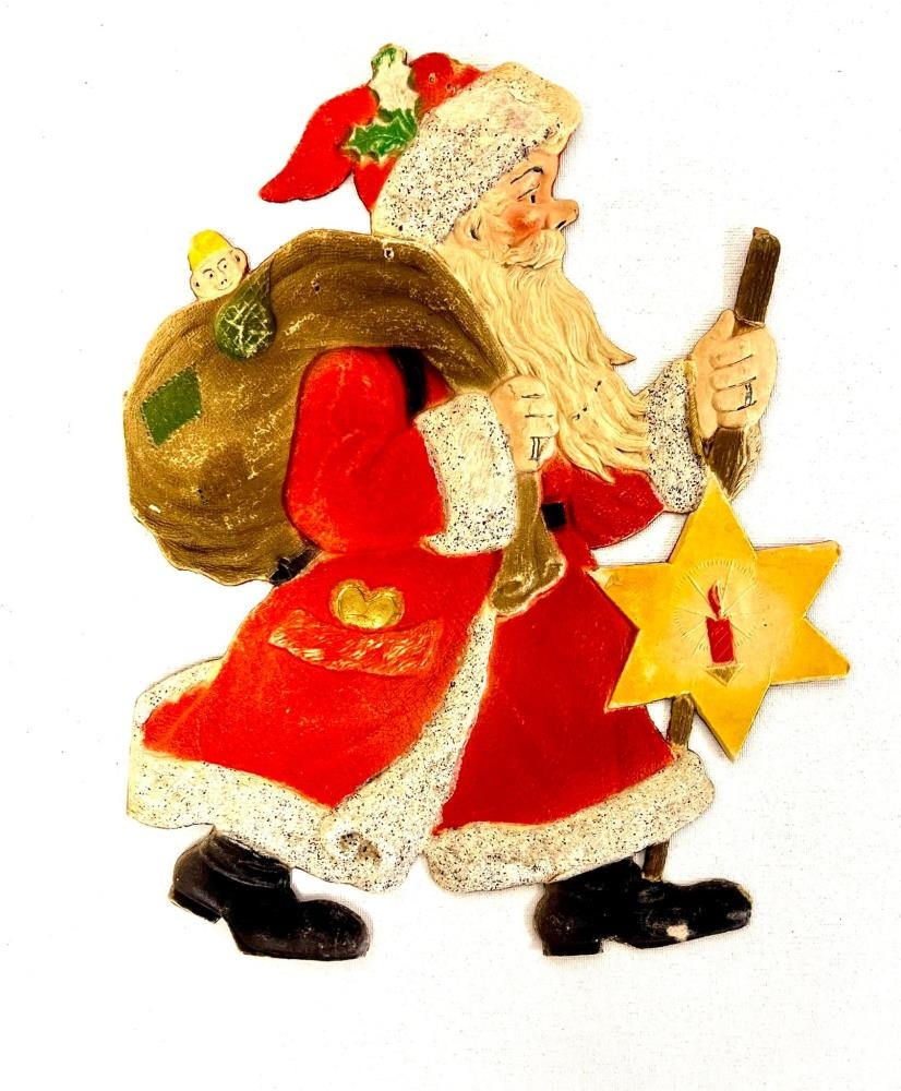 Pappaspjald, jólasveinn með stjörnu, göngustaf og dótapoka