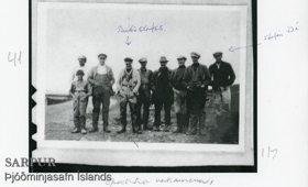 Hópur verkamannao og einn drengur. Skúli Ólafsson þriðji f. vinstri og Stefán Dí yst t.h.