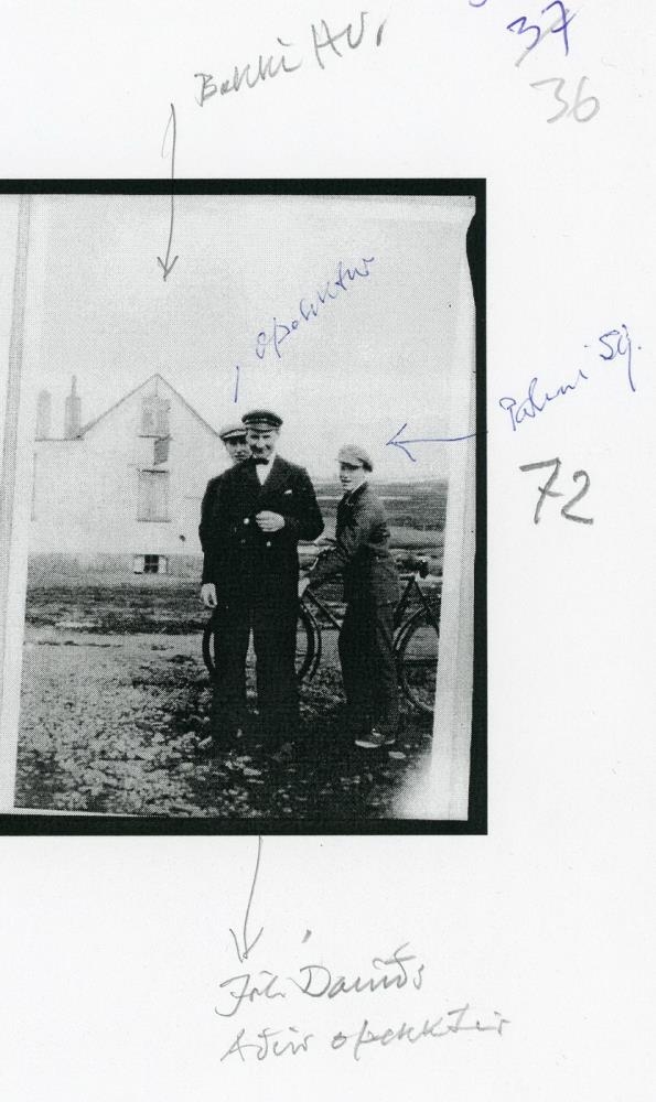 „Húsið er Bakki, fremst Jóhannes Davíðsson og Pálmi Sigurðsson t.h. með reiðhjól. Á bak við Jóhannes Davíðsson sér í Sigurbjörn Teitsson, Húsið á bak við er Þorsteinshús (Ketilríðarhús, síðar Bakki).“ (Þór Magnússon)