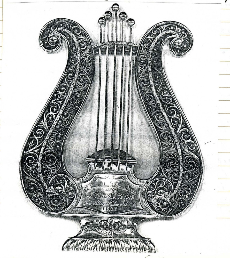 Silfurharpa, minjagripur gefinn Ólínu Þorsteinsdóttur. Á hana er letrað:" Fyrrv. St.Templar Guðmundur Guðmundsson skáld F. 5.9.1874. D. 19.3.1919. Frá Stórstúku Íslands. IOGT". Hörpuvængir eru fagurlega búnir víravirkisskrauti. Strengir enda að ofan í gullhnúðum (5). Þetta er verk Guðmundar Guðnasonar gullsmiðs í Reykjavík. Mikill listgripur. Gjöf systranna Hjördísar og Droplaugar dætra Guðmundar Guðmundssonar skólaskálds og konu hans, Ólínu Þorsteinsdóttur. Minjagripir úr búi þeirra hjóna. Guðmundur var fæddur að Hrólfsstaðahelli í Landsveit 1874, dáinn 1919. Gjöf þeirra systra kom að Skógum árið 2001.