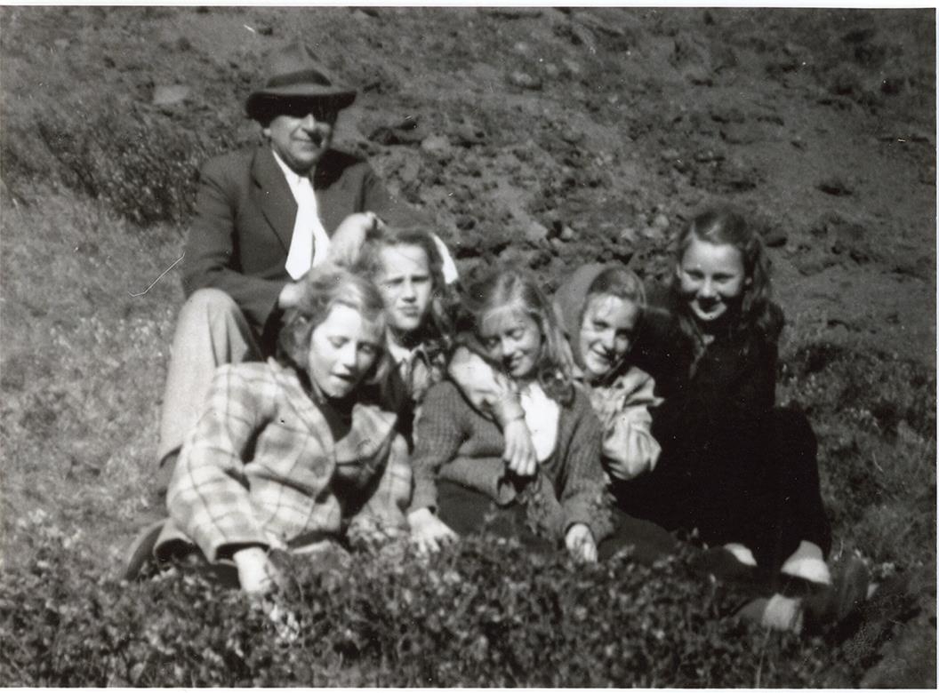 Sveinbjörn Árnason frá Kothúsum í Garði, fyrrum skólastjóri Gerðaskóla á skólaferðalagi með nemendum skólans vorið 1947. Á myndinni eru þau stödd við Kerið í Grímsnesi á leið á Laugarvatn. Auk Sveinbjarnar eru frá vinstri: Ingibjörg Anna Gísladóttir frá Nýjabæ, Jóhanna Andrea Markúsdóttir frá Bjargasteini, Sóley Guðmundsdóttir frá Hólabrekku, Matthildur Jóhannesdóttir frá Gauksstöðum og Sigrún Kjartansdóttir frá Stór-Hólmi í Leiru. Öll búsett í Gerðahreppi á þessum tíma.
