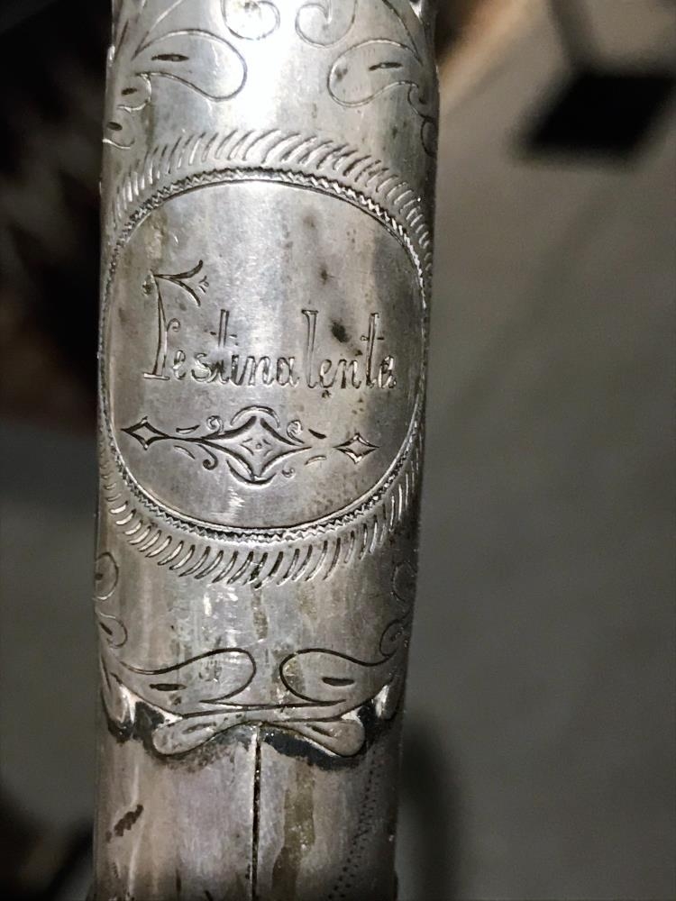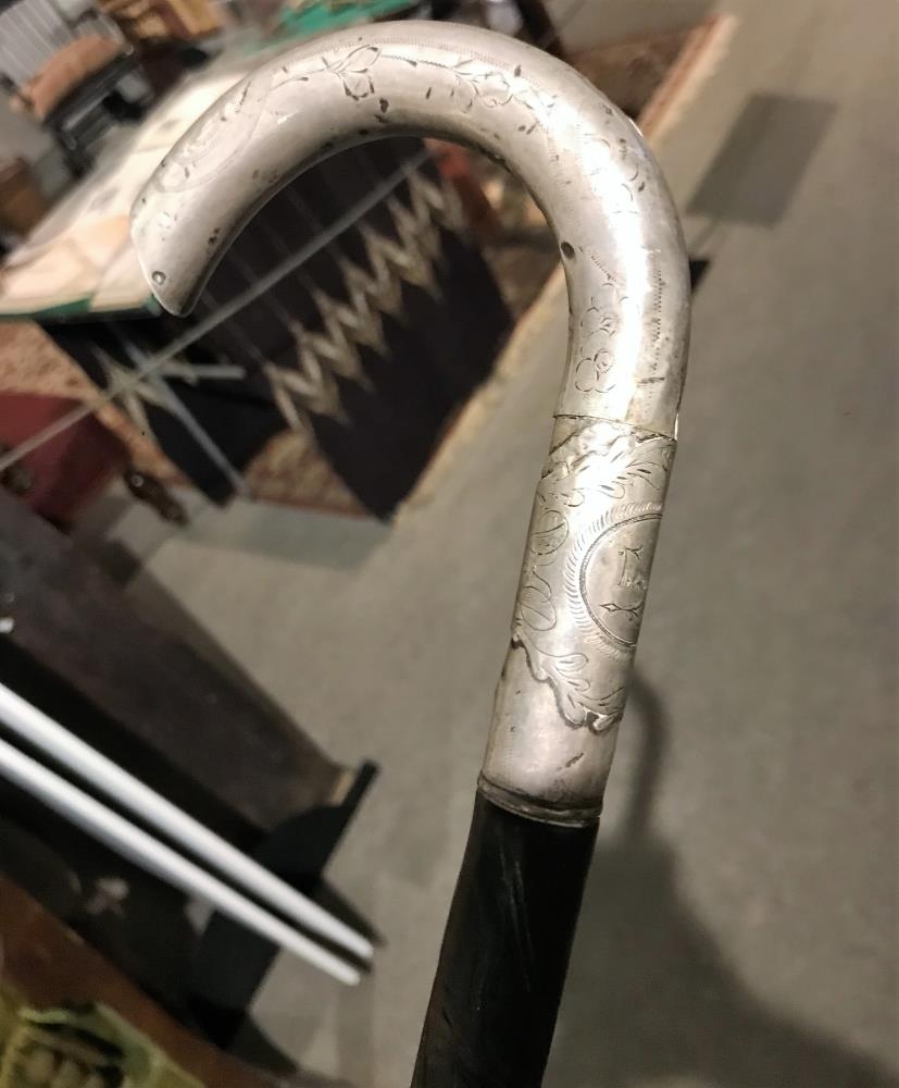 Göngustafur Guðmundar, íbenholt, útskorið og silfurhandfang. Á það er letrað:"G.G: cand philos" og " Festina lente" (=Flýttu þér hægt). Hæð stafsins er 91 cm. Hann er frá Ísafjarðarárum Guðmundar.