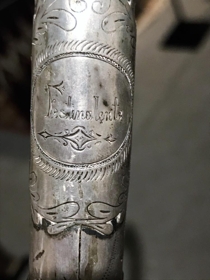 Göngustafur. Gjöf systranna Hjördísar og Droplaugar dætra Guðmundar Guðmundssonar skólaskálds og konu hans, Ólínu Þorsteinsdóttur. Minjagripir úr búi þeirra hjóna. Guðmundur var fæddur að Hrólfsstaðahelli í Landsveit 1874, dáinn 1919. Gjöf þeirra systra kom að Skógum árið 2001.